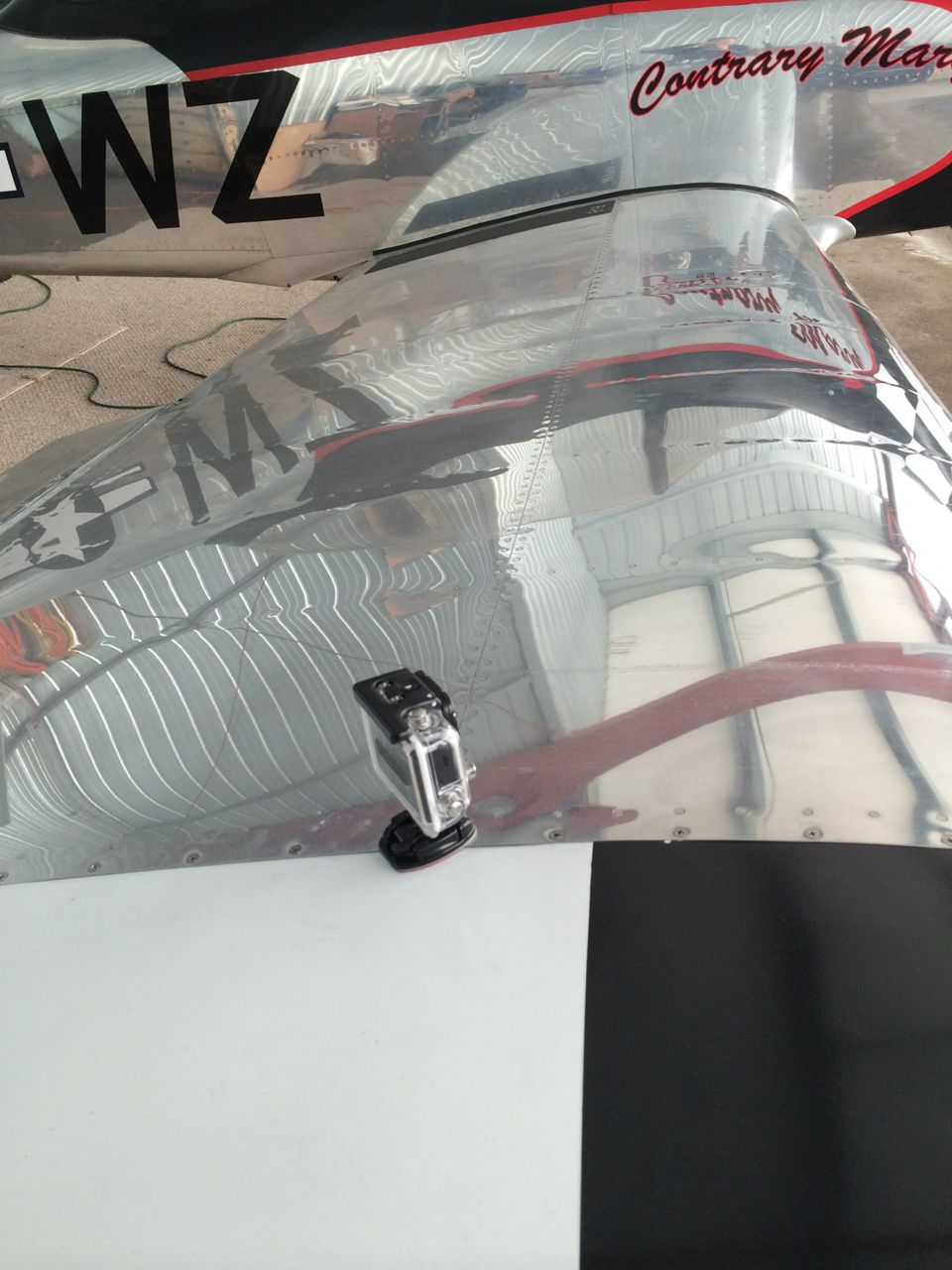 Exterior mounting comes with it’s own set of complexities and liabilities depending on the aircraft type. Composite and fabric airplane have it tough as mounting locations are pretty limited. Metal airplanes with lots of screws are really a dream come true for this, as are airplanes with struts. I have mounted cameras to my tailwheel, wing tie downs, inspection covers, wing tip attach screws, and the top of my vertical stabilizer with no adverse affects. Some of my mounting schemes are vibration prone so you have to experiment with dampening. Staying out of the slipstream is usually recommended. My airplane gets up to 170KIAS during aerobatics and I have had no issues. The suction cup that comes with the GoPro says it’s rated to like 200mph, but I’m too chicken to try it with my expensive camera. Also some have used the 3M adhesives that come with these cameras with success, but again, I just can’t bring myself to trust several hundred dollars worth of equipment to a little glue. In any case, make sure your mourning does not interfere with any moveable surfaces or induces adverse aerodynamic forces. I would never mount a camera to the rudder, elevators, or ailerons. You also need to consider the potential for localized structural overloads where the camera is mounted. If you have a certificated aircraft you really need to be careful to not run afoul of regulations that govern such installations. You are much safer from a regulatory standpoint to just using the camera inside the airplane.